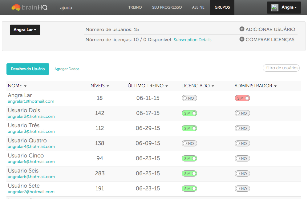 O novo portal permite ativar e desativar usuários, monitorar a evolução de cada participante do programa de treinamento nas seis habilidades cognitivas disponíveis (atenção, memória, velocidade de processamento, inteligência, habilidades sociais e orientação espacial), e ter amplo acesso aos mapas e relatórios de progressão nos cursos e exercícios – além de uma série de outras funcionalidades de administração e monitoramento on-line (vide abaixo).